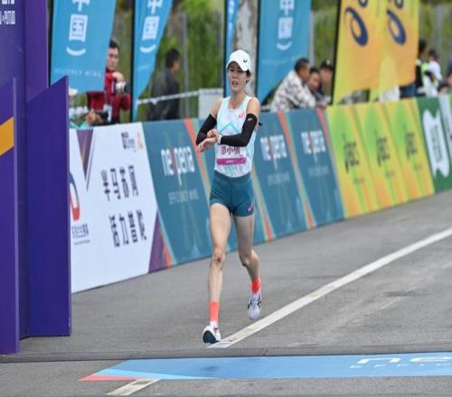 鄭小倩在賽事中刷新個(gè)人PB,成為國(guó)內(nèi)女子組第一名。澎湃新聞?dòng)浾?朱偉輝 攝
