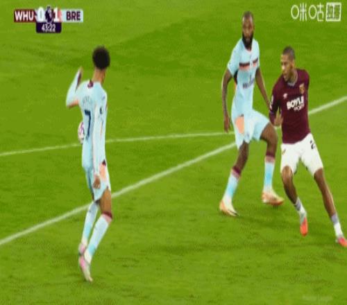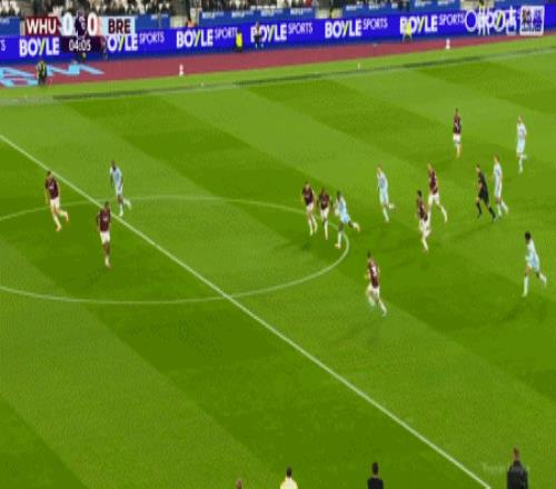 第43分鐘,沙德助攻,蒂亞戈射門得分,布倫特福德1-0西漢姆聯(lián)