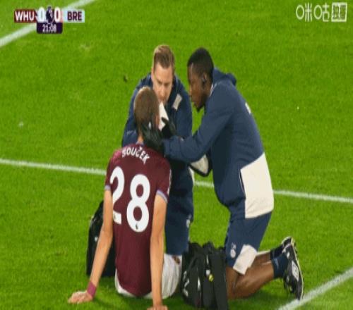 第21分鐘,紹切克爭頂將眼角撞破流血,隊醫(yī)上場為其治療