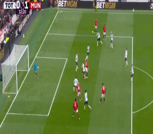 整個(gè)上半場比賽,雙方機(jī)會寥寥,不僅進(jìn)攻端嚴(yán)重受阻,在中場的傳球也多次出現(xiàn)了失誤;熱刺3次射門全部偏出了球門。曼聯(lián)前20分鐘沒有制造出一次射門機(jī)會;不過上半場還是產(chǎn)生了一粒點(diǎn)球。第32分鐘,范德芬禁區(qū)內(nèi)解圍卻一腳悶在了B費(fèi)臉上,庫尼亞組織二次進(jìn)攻機(jī)會,迪亞洛右路觀察后選擇傳中,姆伯莫原地跳起甩頭攻門得手,1:0!不得不說姆伯莫對熱刺還是十分有心得,生涯8次在聯(lián)賽中與熱刺交手,貢獻(xiàn)了5球1助攻。